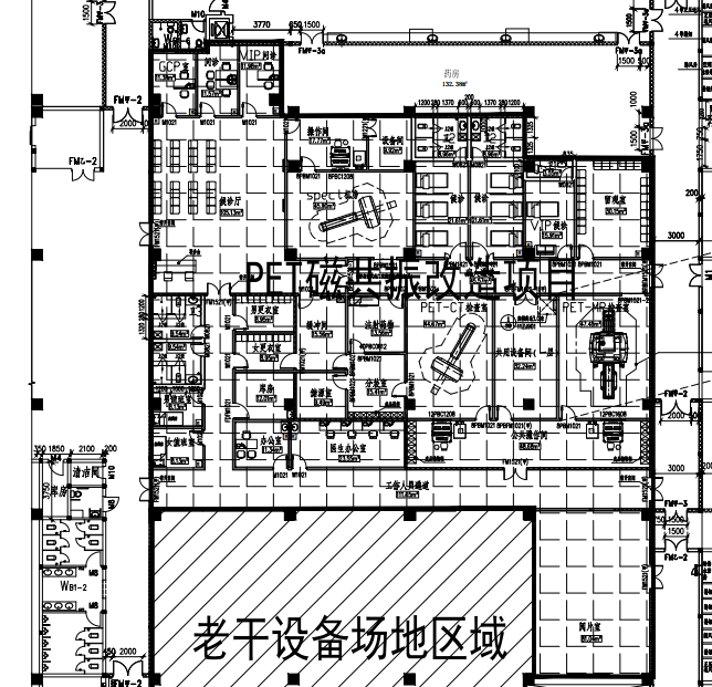 1、本次PET中心改造項目是醫(yī)院特裝專業(yè)工程里面最復(fù)雜的項目之一,具體表現(xiàn)為:多專業(yè)(建筑、結(jié)構(gòu)、給排水、強電、弱電、暖通、凈化空調(diào)、精密空調(diào)、防護、磁屏蔽等)且專業(yè)性強、場地選擇論證(于建筑面積近30萬㎡的已建醫(yī)療大樓內(nèi)選擇)、原始資料的收集與現(xiàn)場踏勘的精準性要求、環(huán)評的高要求、對使用零影響的前提下改造范圍各專業(yè)與已建建筑物的融合和與接、設(shè)備進場路線與安裝設(shè)計要求等,且本項目配置有PET-MR、PET-CT、SPECT共三款設(shè)備的檢查室更增加其設(shè)計難度。項目位于湘雅醫(yī)院醫(yī)療大樓D區(qū)負一層范圍(如下圖):