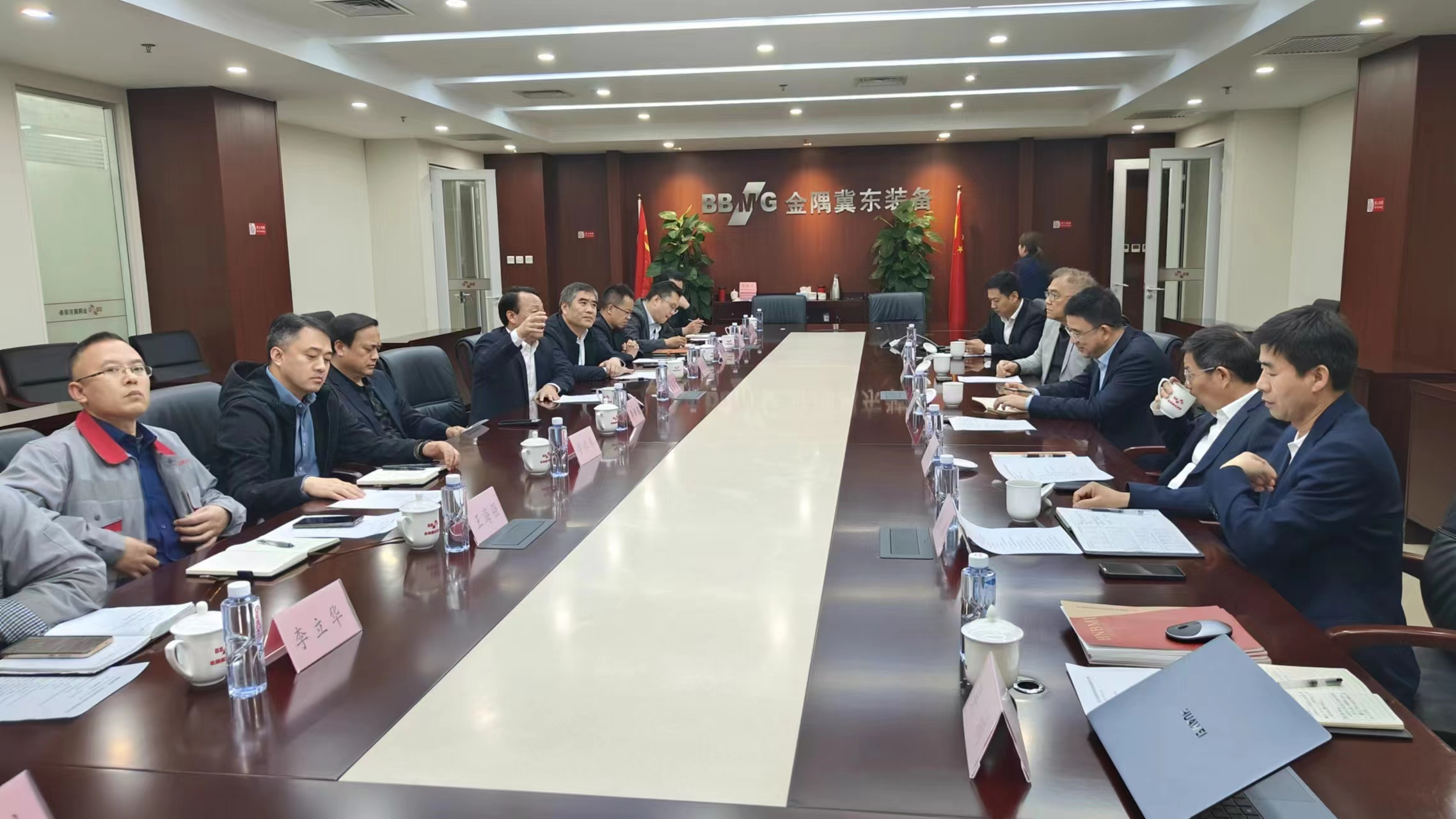 4月23日,HNBMI董事長(zhǎng)晉欣然帶領(lǐng)副總經(jīng)理吳春宏、市場(chǎng)總監(jiān)徐林、市場(chǎng)部副經(jīng)理吳楠,攜同戰(zhàn)略合作伙伴艾法史密斯水泥(北京)有限公司董事長(zhǎng)、總經(jīng)理梁國(guó)勛,市場(chǎng)總監(jiān)申金永一行赴冀東發(fā)展集團(tuán)有限責(zé)任公司進(jìn)行座談交流活動(dòng)。冀東發(fā)展集團(tuán)有限責(zé)任公司黨委書記、董事長(zhǎng)王向東,唐山冀東裝備工程股份有限公司黨委書記、董事長(zhǎng)焦留軍,黨委副書記、總經(jīng)理李洪波,黨委委員、財(cái)務(wù)總監(jiān)陳峰,唐山盾石建筑工程有限責(zé)任公司黨委委員、副經(jīng)理李永軍等出席交流會(huì)。