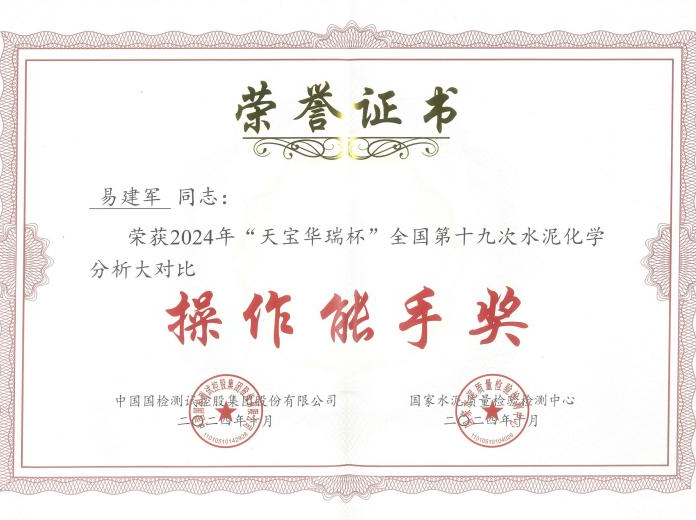 近日,由國家水泥質(zhì)量檢驗(yàn)檢測(cè)中心主辦的“天寶華瑞杯”全國第十九次水泥化學(xué)分析大對(duì)比總結(jié)表彰暨技術(shù)研討會(huì)在廣西南寧召開,湖南省建筑材料質(zhì)量監(jiān)督檢驗(yàn)授權(quán)站(以下簡稱“省建材質(zhì)檢站”)斬獲特等獎(jiǎng),易建軍獲得化學(xué)分析“操作能手”榮譽(yù)稱號(hào),再創(chuàng)佳績。